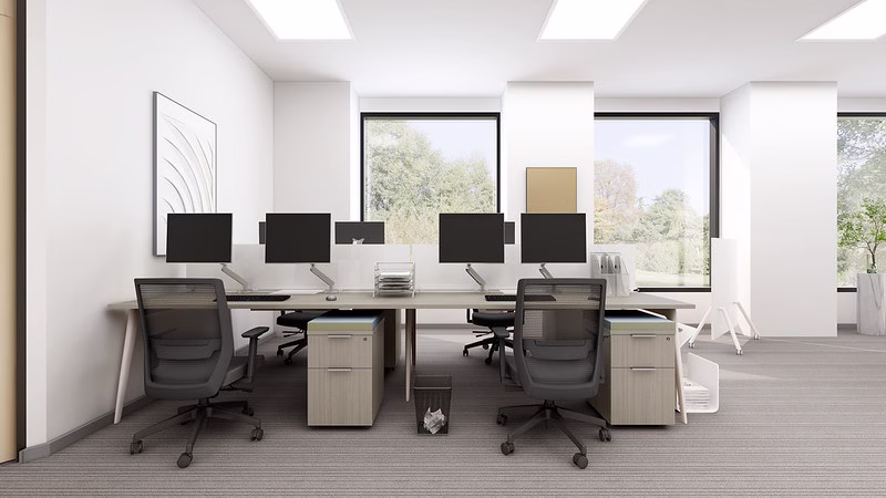 Select worksurface support options including legs, pedestals, cabinets, or credenzas