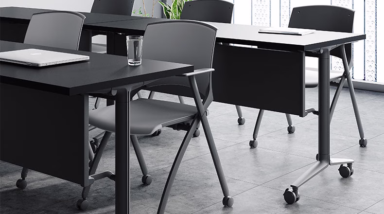 Flexibility and ease of motion make these tables easy to set up and configure in a wide range of spaces.Â