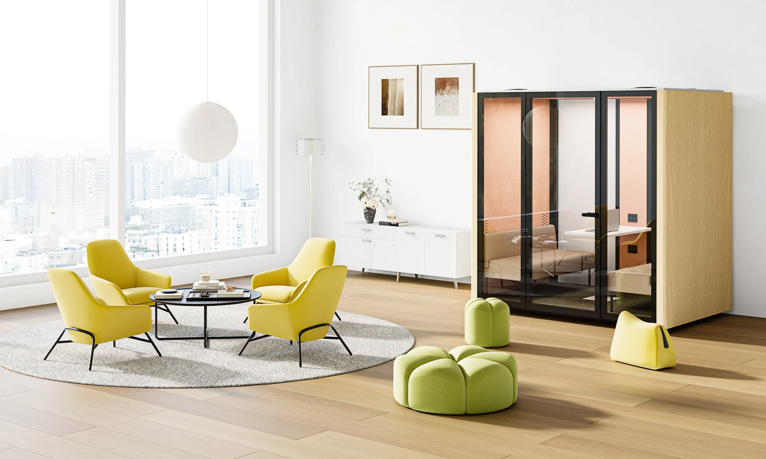 Create workspaces that support collaboration and focus. The 4-Person Office Pod Deluxe offers spacious interiors, verified acoustic performance, and built-in privacy that help teams meet confidently, collaborate effectively, and think on a larger scale.