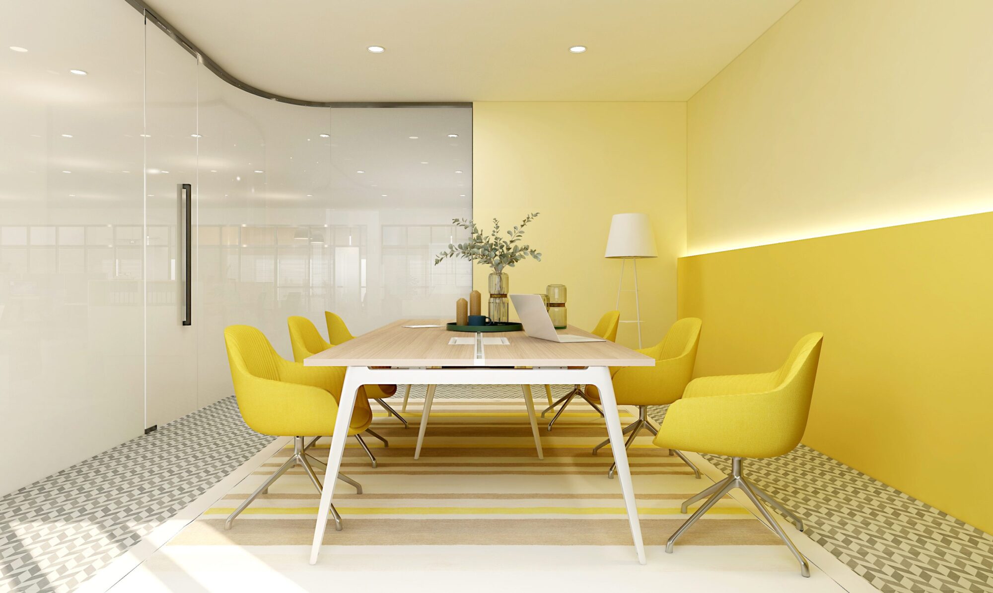 To bring some sunshine indoors, add yellow accent chairs and sofas to rooms that are otherwise outfitted in neutral tones. However, if you’re feeling bold, try yellow chairs in a room with a matching accent wall and otherwise neutral decor. Try it in a meeting room or communal space to encourage collaboration among your team!