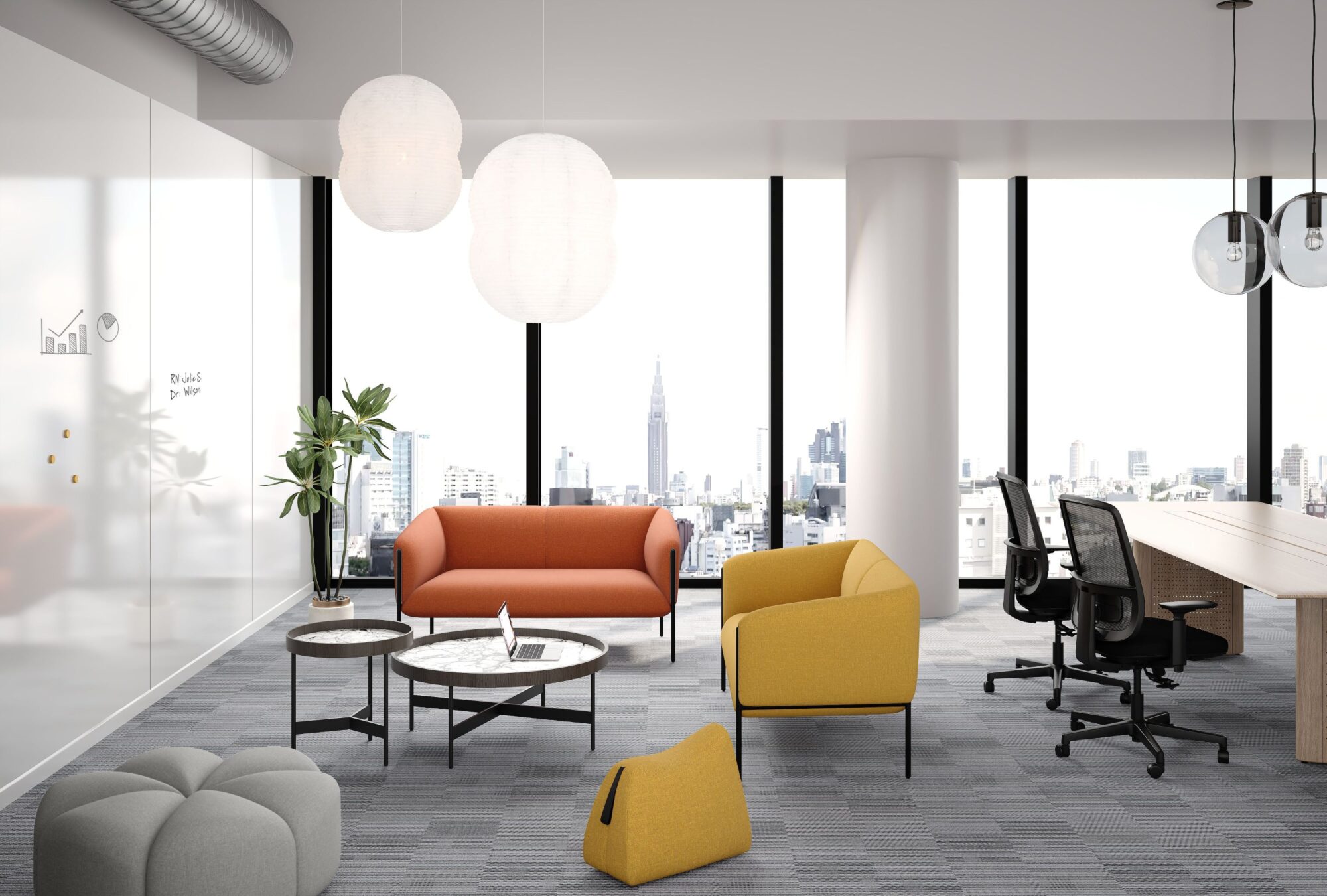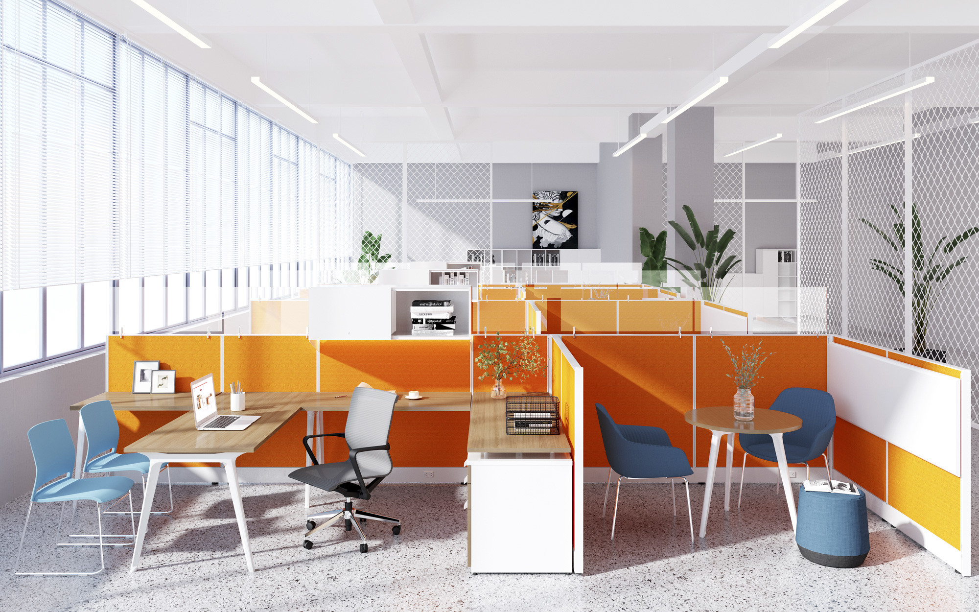 That said, for the adventurous among you, try a panel system in a vibrant shade of orange, offset by blue seating. Whether it’s every panel system in the office, every other, or just a few here and there, your workspace won’t lack in vibrancy once they’re in place. For those not quite so willing to commit to that much color, stick with accent seating placed around the office.