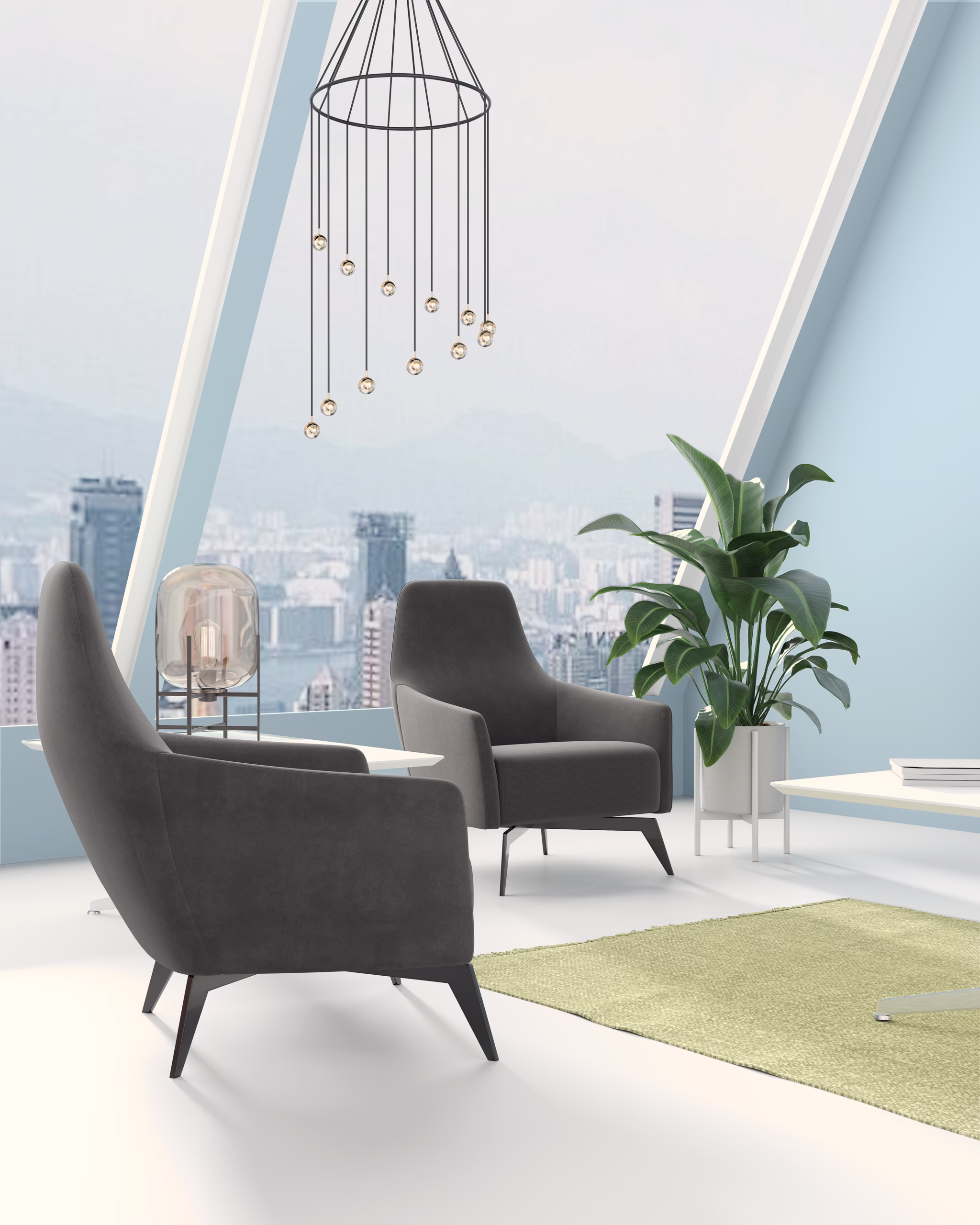 Relax and revive while lounging in the Anza lounge chair. It’s slightly sloped arms, and a deep-cushioned seat encourages comfort within your workspace. The felt textile creates a flawless look adding to the sophistication of the chair. Anza is sure to make people feel welcome in any reception or lounging environment.