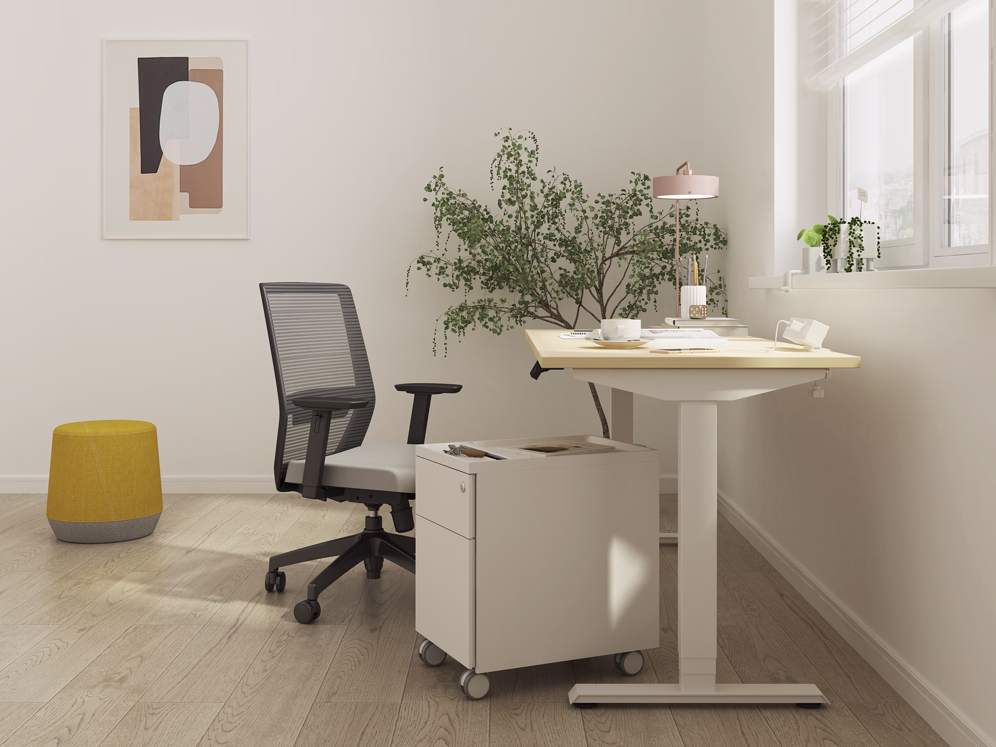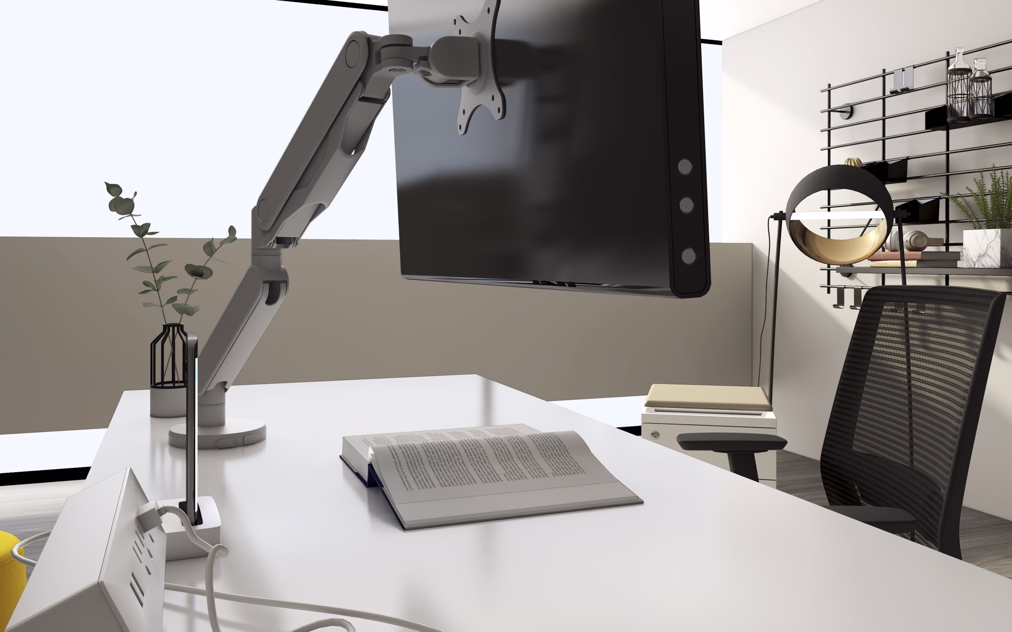 Take your home office to the next level with a monitor arm that gives you full control of how you view your screen. Paired with a height-adjustable desk and a comfortable seating experience you can create the perfect workspace.