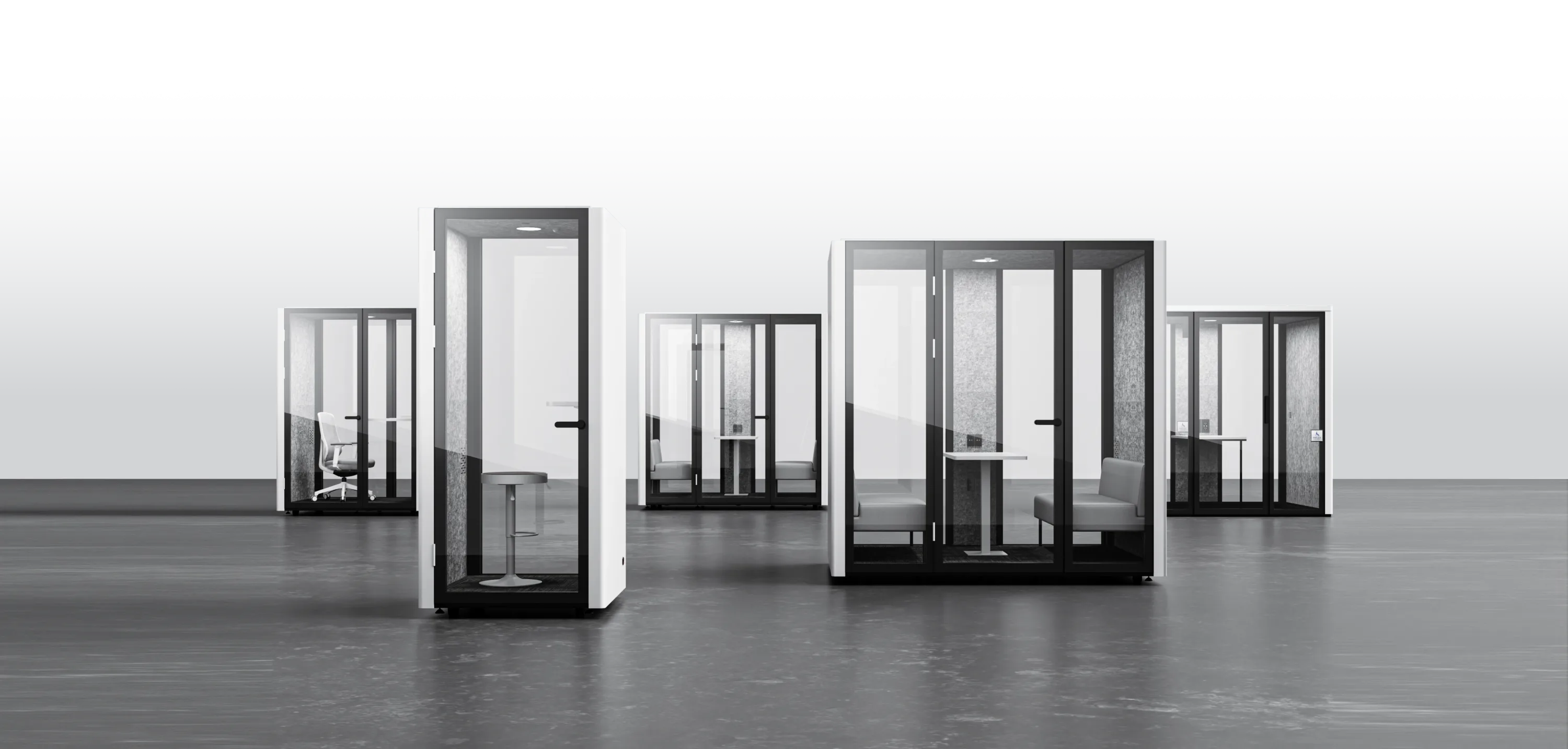 From 10 mm tempered glass doors to steel construction and GREENGUARD® Gold-certified acoustic PET, every component is deliberately chosen for durability, comfort, and long-term performance.