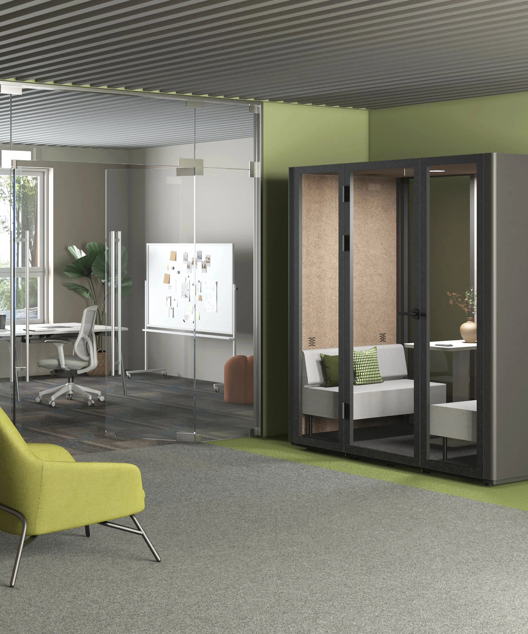 Make room for ambitious ideas. The ReddiSpace OurTime provides generous interiors, ISO 23351-1 Class A noise reduction, and thoughtfully designed work zones to support productive meetings, collaborative brainstorming, and hybrid teamwork.