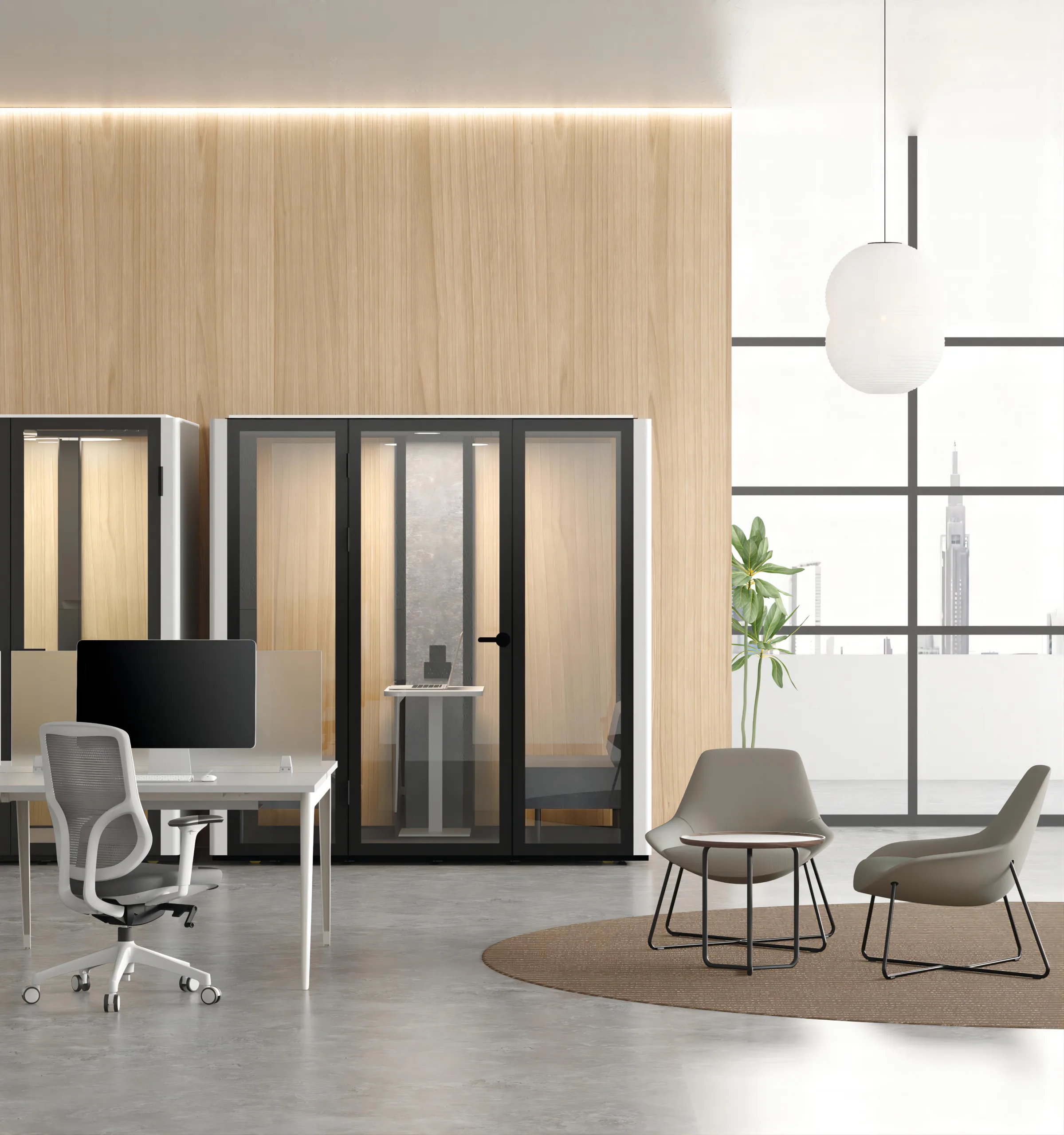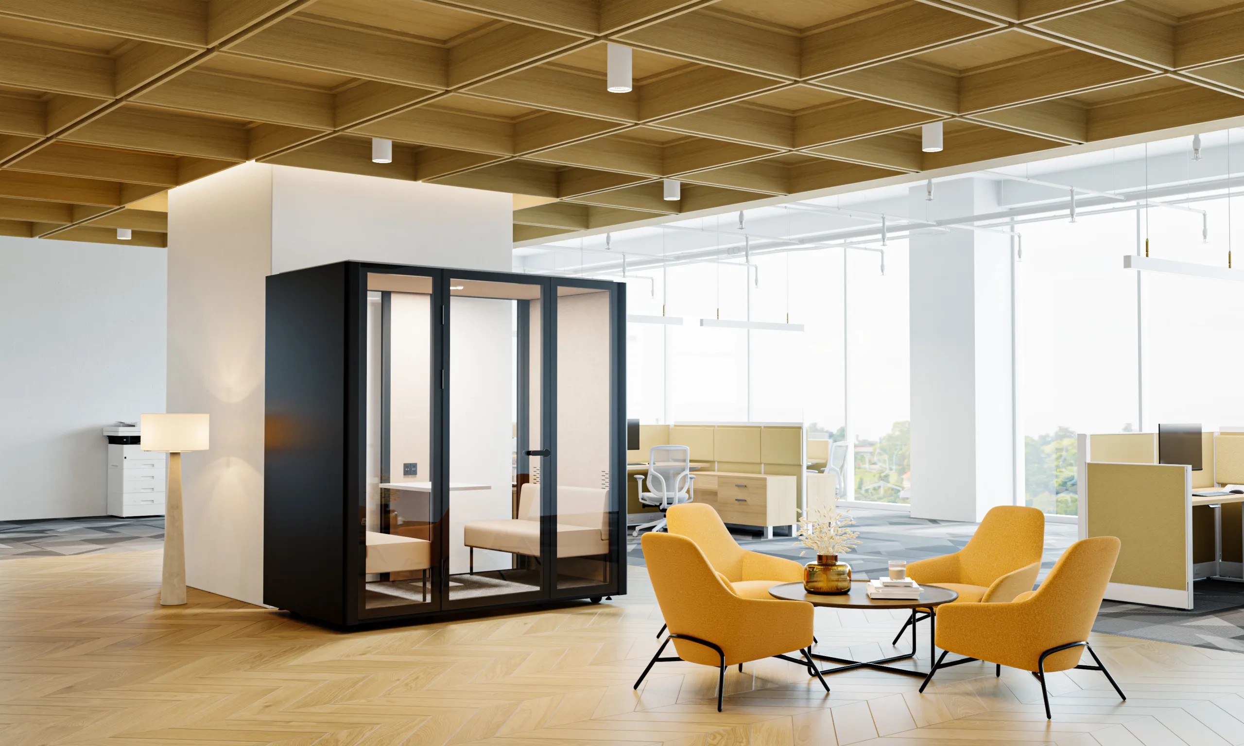 Design workspaces that support focus, creativity, and collaboration. The 4-Person Office Pod Plus provides privacy, noise reduction, and a thoughtfully designed interior, helping teams stay productive and making meetings more effective.