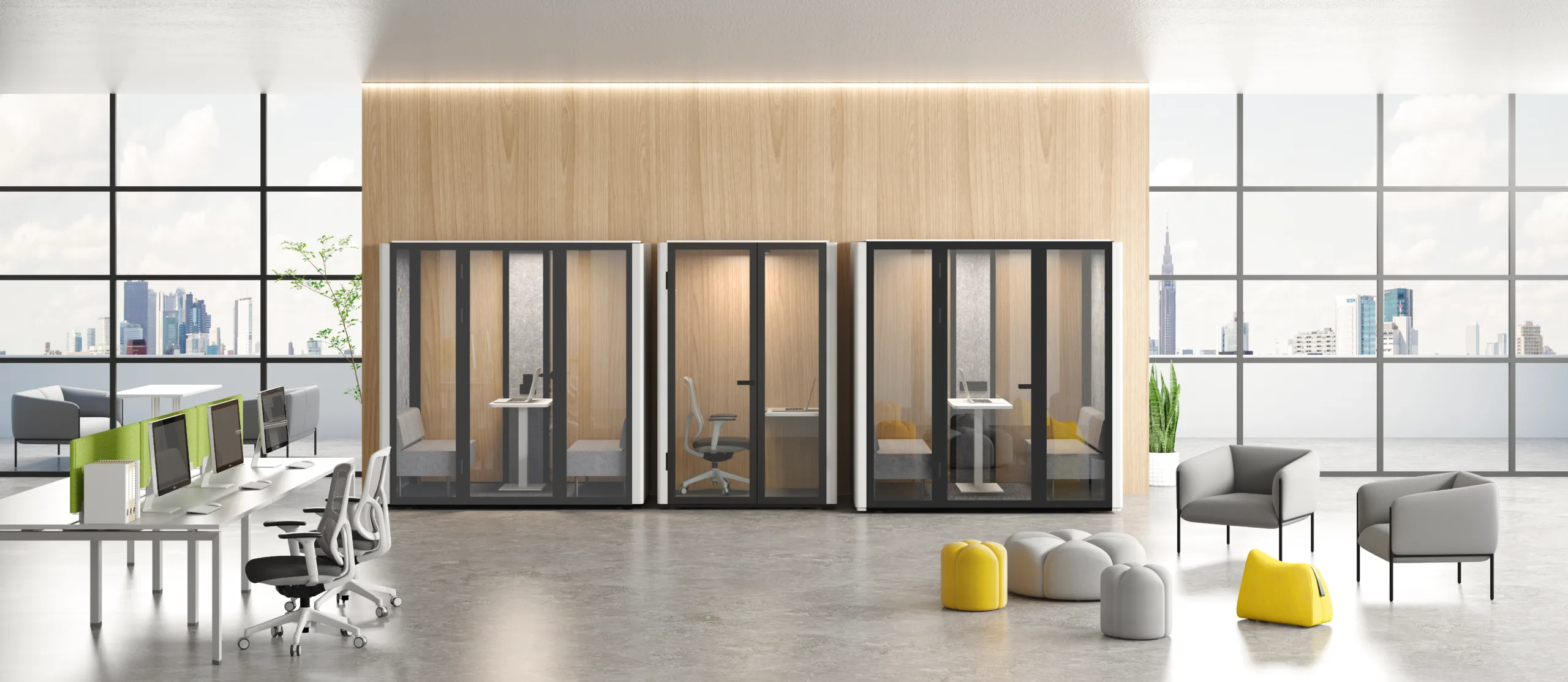 Designed for comfortable, focused teamwork, the 4-Person Office Pod Plus seats four and offers options like a sofa and freestanding table for flexible setups. Every feature supports clarity, comfort, and productive collaboration.