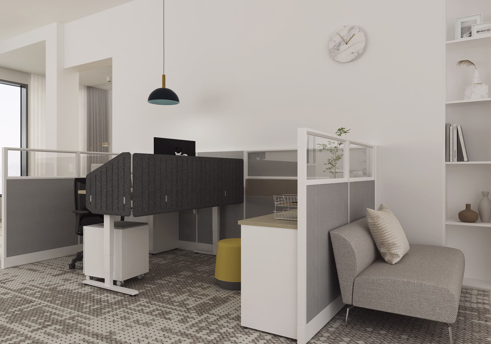This system can be easily installed and reconfigured. Straightforward and practical, with its magnetic bases and cantilever worksurface supports, you'll be up and running in no time.