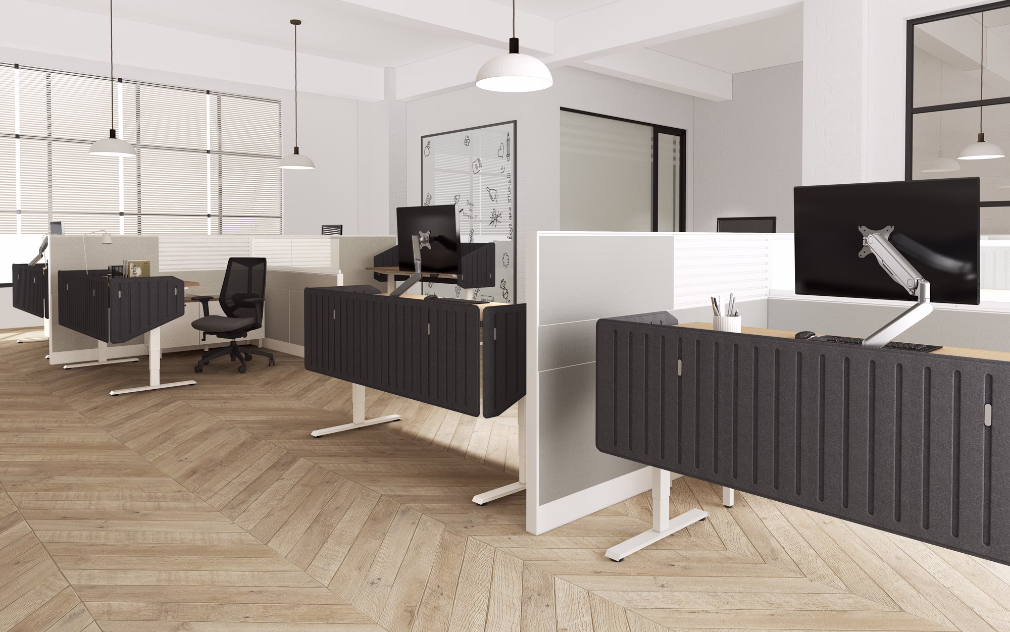 Our new Flyp screens are a contemporary and easy to install solution that help define employee space and reduce workplace distractions. Designed to promote privacy whether retrofitting existing furniture or purchasing new, Flyp is a solid addition to any workspace.