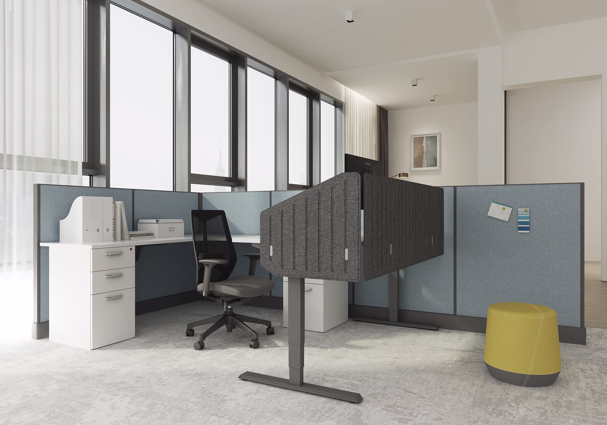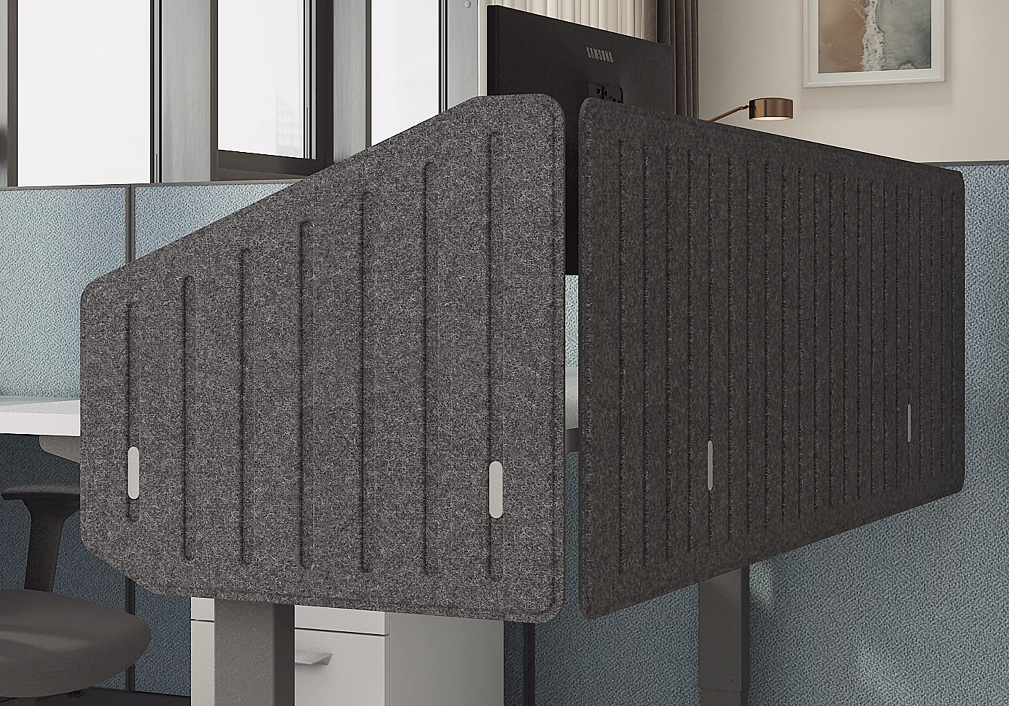 Friant Flyp Screens come one piece at a time to give you maximum flexibility when finishing your space. Cover one side of a desk or all three, depending on what your space and needs demand.