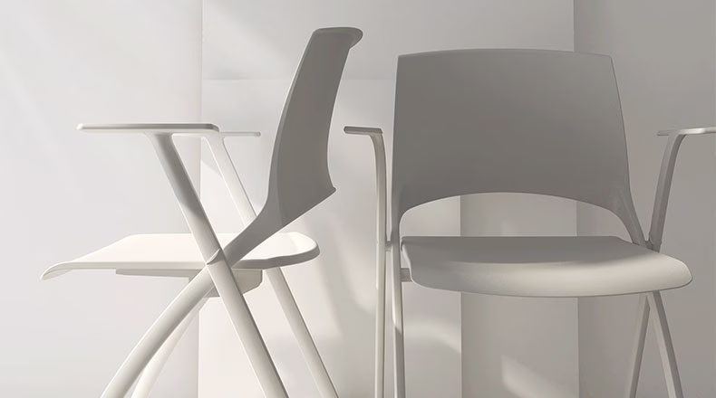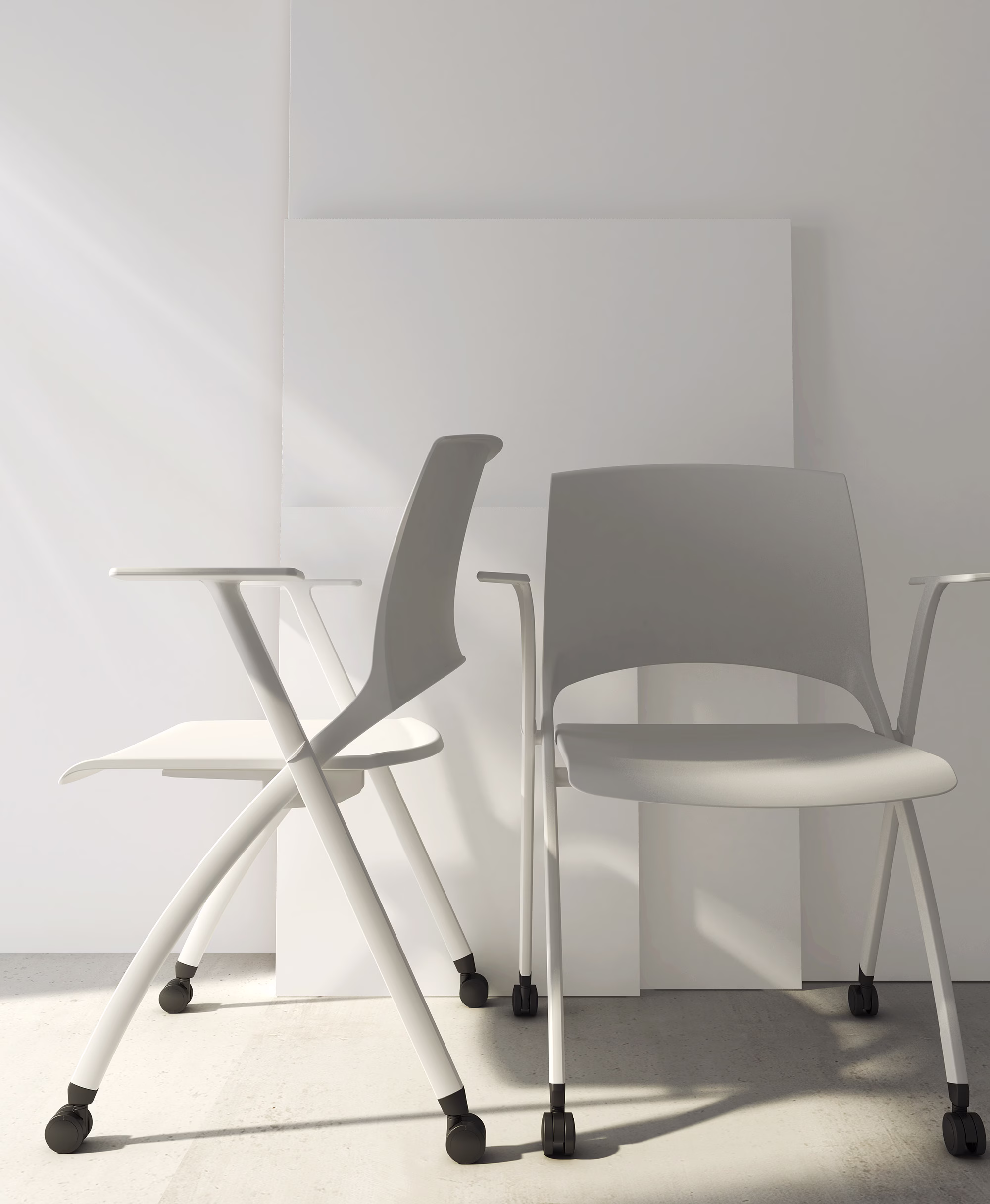 Soleil is designed to nest and fit together for easy storage when not in use. This feature, combined with the smooth-glide casters, allows for easy arrangement and configuration.