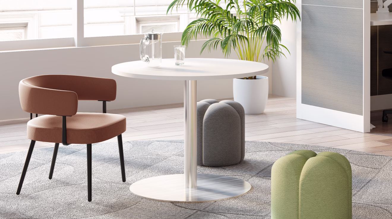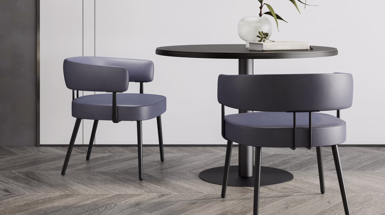 Keld features bold metal framing and legs that vary in thickness and angles. The juxtaposition adds to its clean and elegant aesthetic.